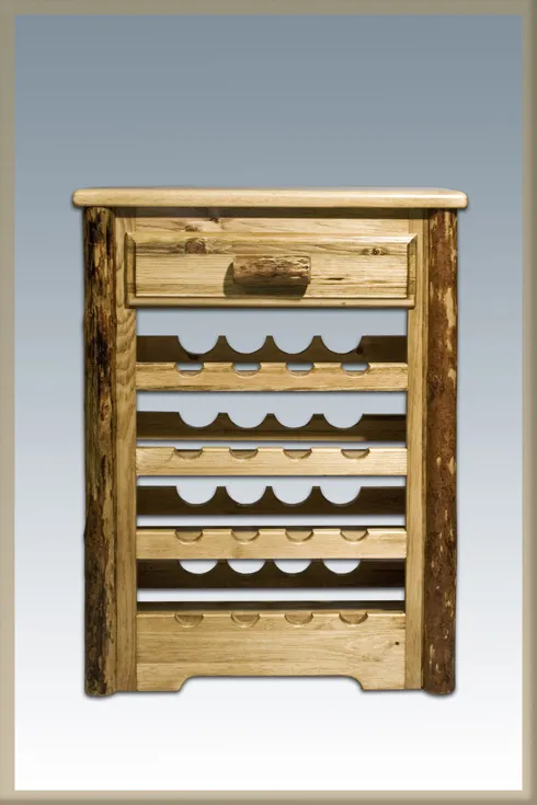 With half log supports and rustic pine surfaces, this wine rack is a beautiful place for your fine wines.