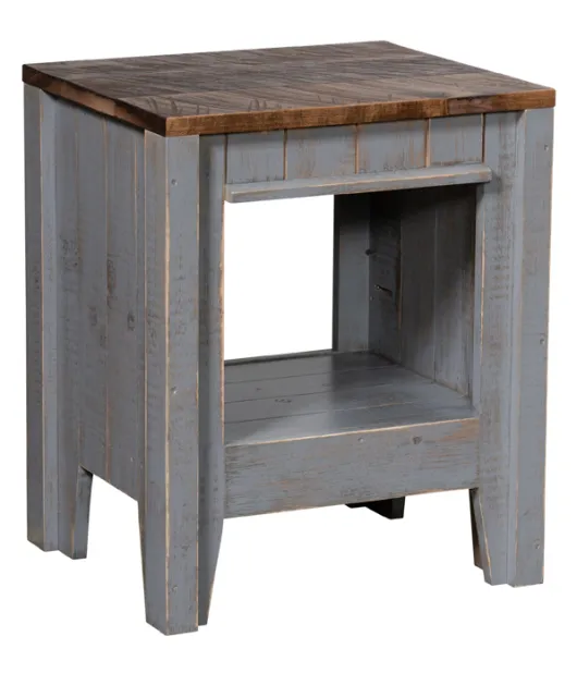 Pictured in pine with Chelsey Gray paint with Earthtone stain. Contact us for custom stains.