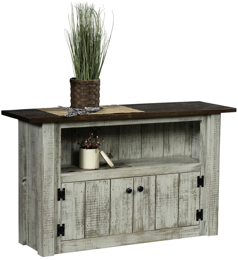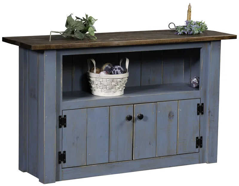 Pictured in pine with Brushed Blue Slate stain. Contact us for custom stains.