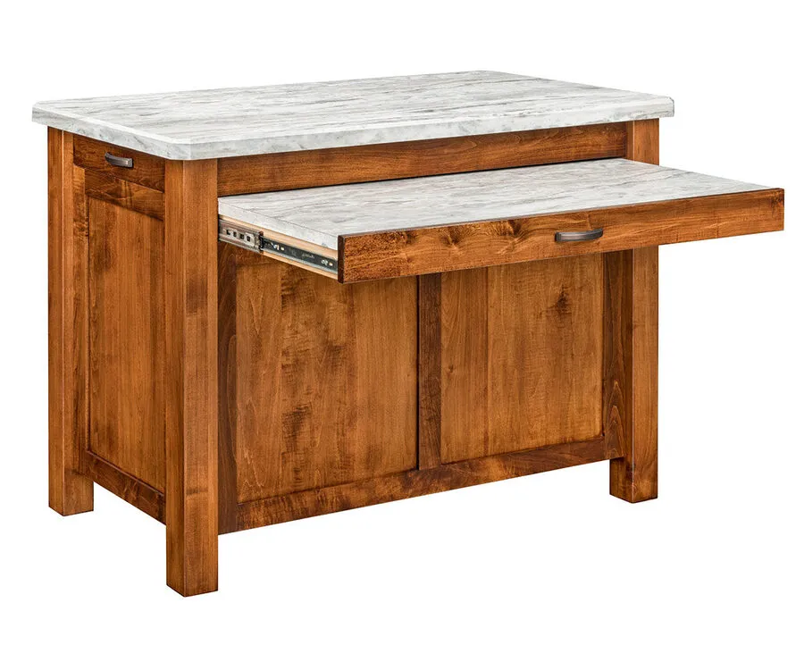 Pull-out cutting board on each end (Hard Maple butcher block with food safe tung oil finish)