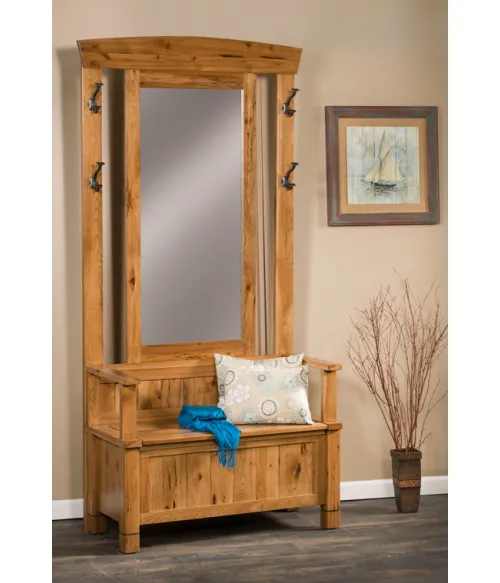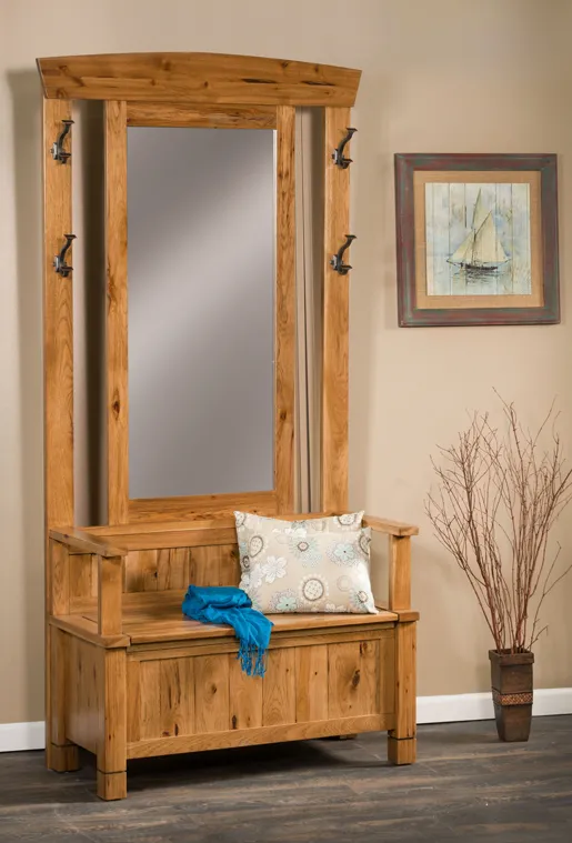 The pictured Greyson Hall Seat is built in rustic hickory with FC4562 stain.