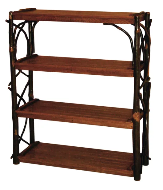 This slatted shelf is noticeably handcrafted with its rustic hickory legs and bent hickory designs on either end.