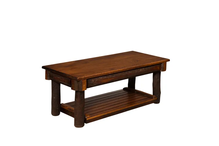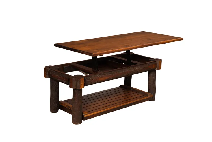 This table may be rustic with its log legs, but it is both modern and elegant with its slatted self and lift top. Your handcrafted coffee table can store a surprise inside.