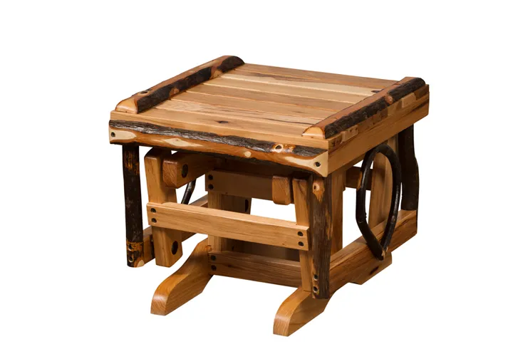 Styled with slats and twigs, this handcrafted ottoman is the perfect companion to our hickory glider or rockers.
