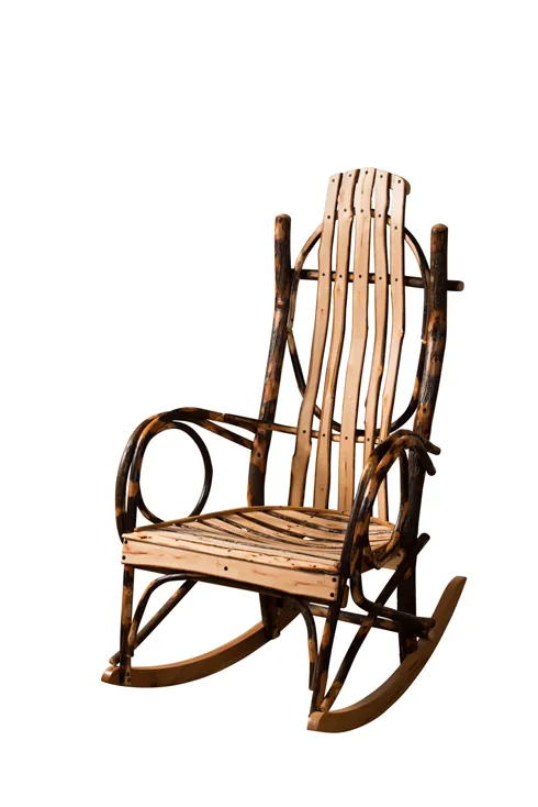 Our slatted hickory rocker has hand-bent twigs but this version is even more rustic with hickory around the contoured slats.