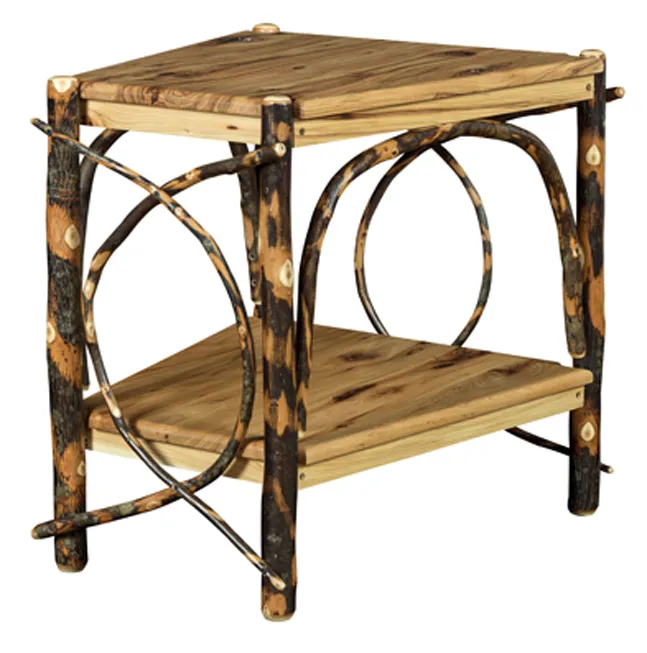 The Artesa Open End Table with Shelf has so many stylish angles. The beveled edge, arched trestles, ..
