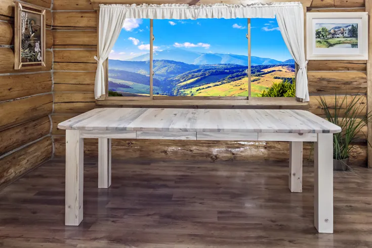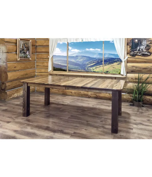 The Homestead Four Post Dining Table with Leaves fits a rustic and elegant dining room with its plain design. The legs of this table are four broad square posts, keeping it sturdy and simple.
