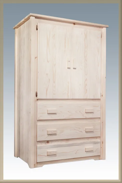 Only the Homestead line could make an armoire appear stoic. This piece is as sturdy as any Amish furniture but is a manageable price. While it is popularly a rustic piece, the clean lines and choice to finish it yourself allow you to use this armoire in a modern room as well.
