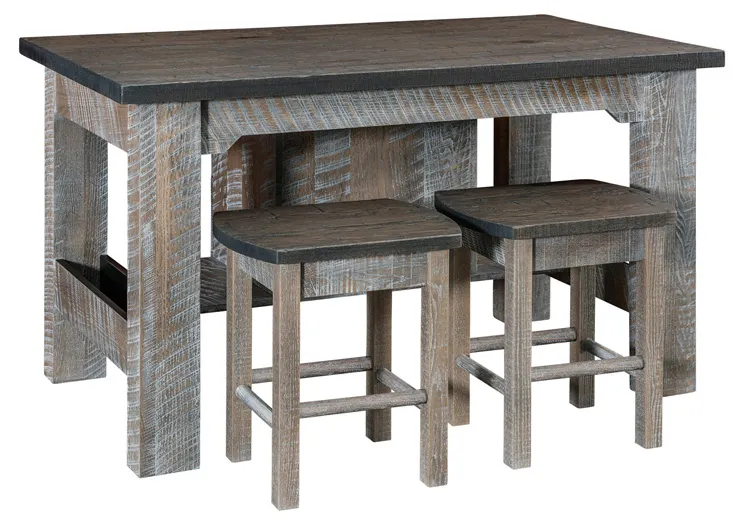 Pictured in a customized two tone finish, hand hewn oak top with FC-19852 Antique Slate stain; ruff sawn oak base with Ashley PCL-174 stain. Custom finishes need to be ordered by phone.
