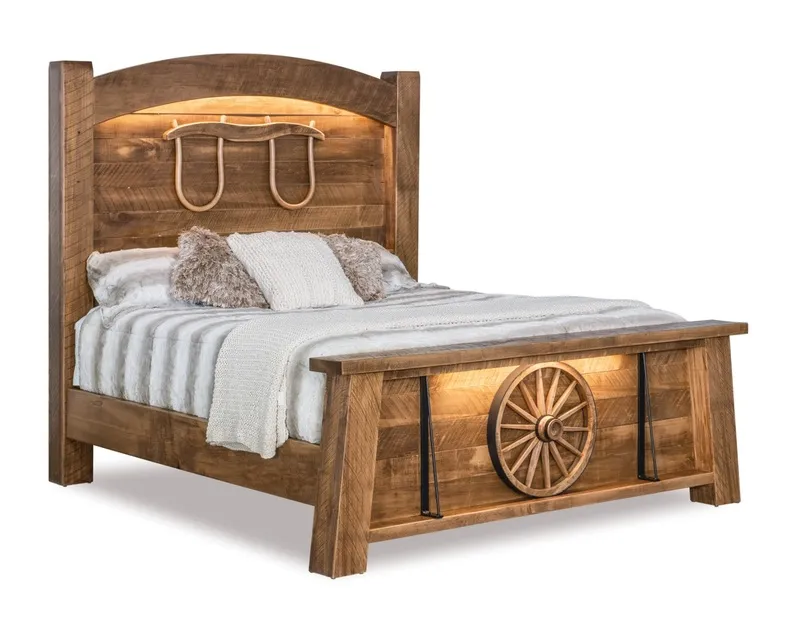 Pictured in rustic rough sawn brown maple with Harvest stain. With Wheel and Yoke in Harvest stain.