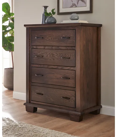 Constructed with 1¾" solid tops, the JR Burlington 4 Drawer Chest ensures sturdiness and longevity, standing the test of time with grace. The sides are crafted from ¾" solid vertical boards, adding to the chest's robust structure and sleek appearance. Each of the four drawers features full extension drawer slides, allowing for smooth and effortless access to your belongings. The use of solid maple dovetailed drawer boxes reflects a commitment to quality, providing enhanced durability and an artisan touch.