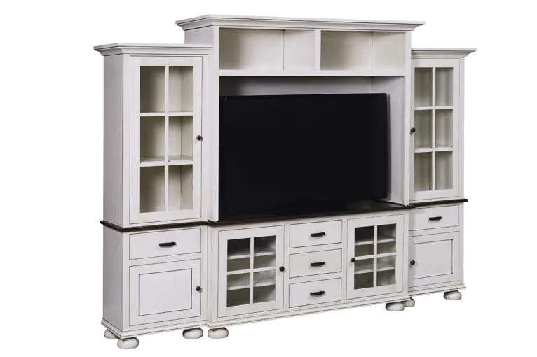 Stylish and minimal, the Kaitlyn Wall Unit complements a classic and functional setting. The storage, distinct style and Amish standard heirloom integrity guarantees endless evenings of entertainment with family and friends. Host a mini game tournament, play your favorite sweet soul music or have a movie marathon with your TV displayed gorgeously in this one of a kind furnishing.