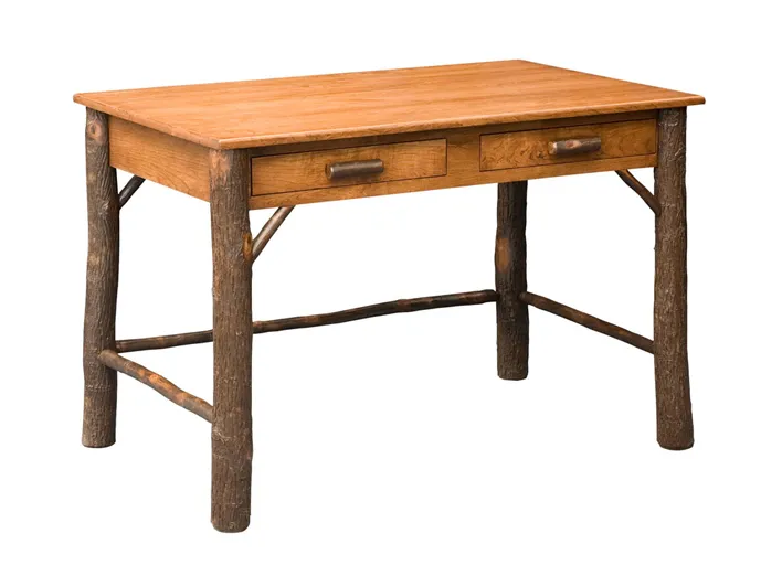 Nothing complements a spare wall like a good wooden writing desk. You'll enjoy this desk as much when you use it as not. It has the style of hickory legs and drawer pulls, pairing reliable function with rustic handcraftsmanship.