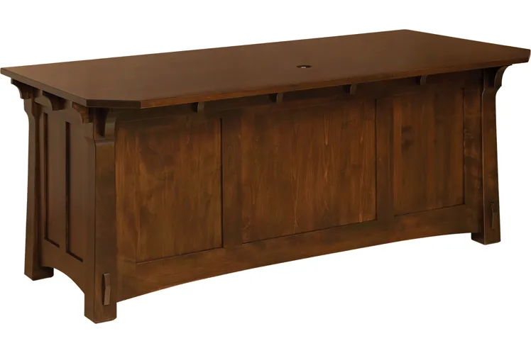 The pictured Manitoba Executive Desk is built in brown maple with Rich Tobacco OCS-228 stain.