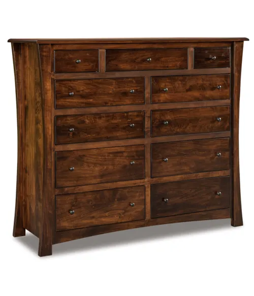 The pictured Matison 11 Drawer Double Chest is built in brown maple with Rich Tobacco stain.