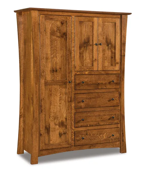 The pictured Matison Chifferobe is built in rustic qs white oak with Lite Asbury stain.