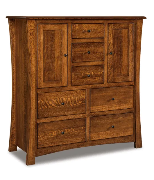 The pictured Matison His & Her Chest is built in qs white oak with Golden Brown stain.