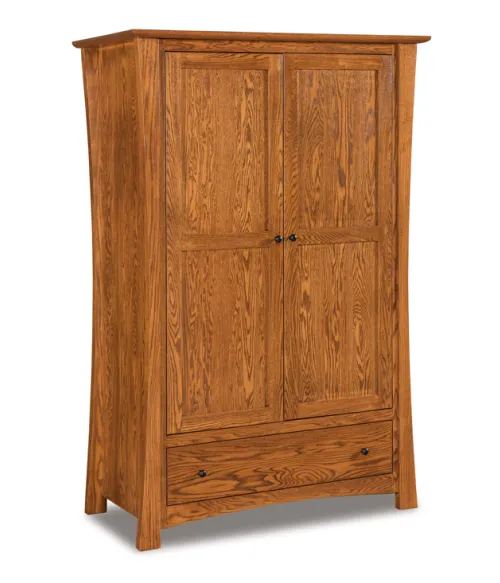 The pictured Matison Wardrobe Armoire is built in oak with Autumn Oak stain.