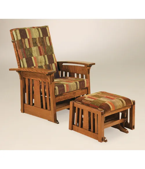 The McCoy Glider is expertly crafted to offer both style and functionality. Its robust frame supports a generously sized seat, alongside an ottoman for added comfort. The chair’s design promotes an ergonomic seating position, making it an excellent choice for those seeking a blend of style and practicality.