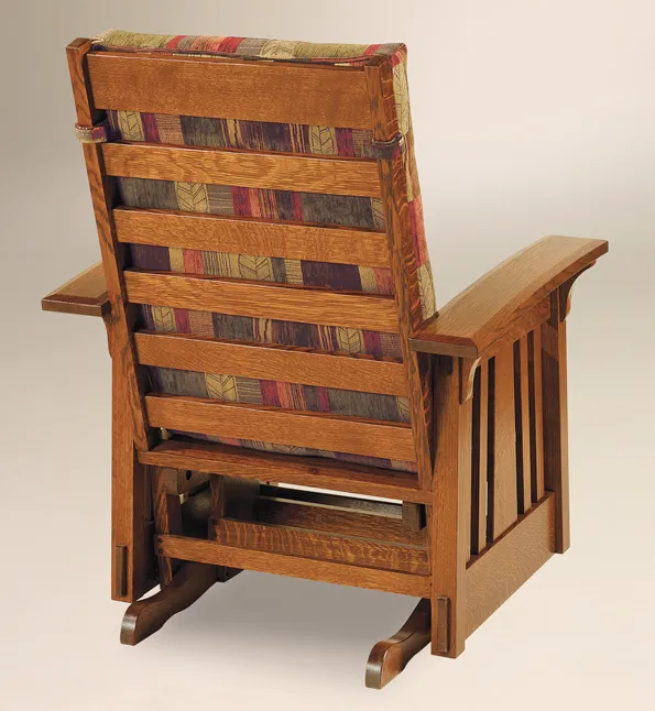 Fabricated with top-grade materials, the McCoy Glider is built to last. Its standard fabric seat is made to withstand regular use while providing a soft and inviting feel. For those desiring a touch of luxury, the chair can also be upholstered in genuine leather, which naturally ages and develops a unique patina, enhancing the aesthetic value of the chair over time.