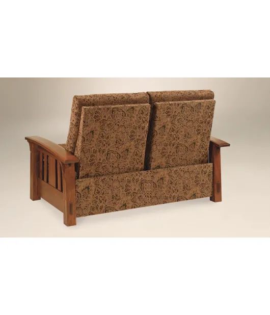 This recliner has heirloom hardwood construction that shows in the sides. Steam bent arm rests are right for any reclining angle. Beveled edges add style to the arm rests. Slatted sides and exposed mortise joints add Mission detailing to this wooden recliner. Both front and back of this recliner are upholstered.