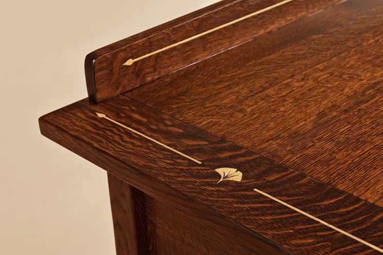 Solid wood, yellowheart ginkgo leaf and arrow inlays