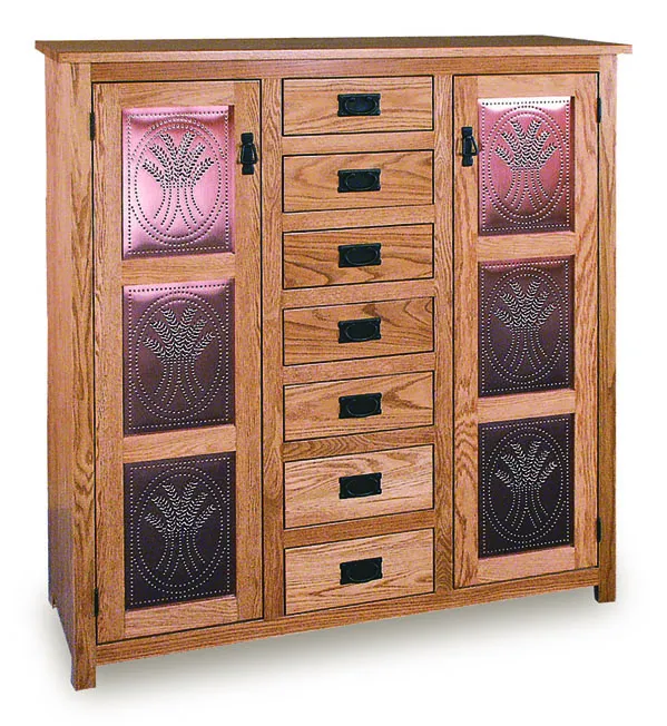 Mission 50" Pie Safe with 7 Drawer & Metal Inserts Door