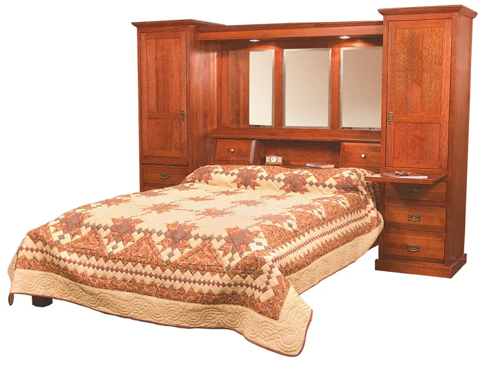 Pictured in red oak with Michael's Cherry stain and optional Antique Brass hardware.