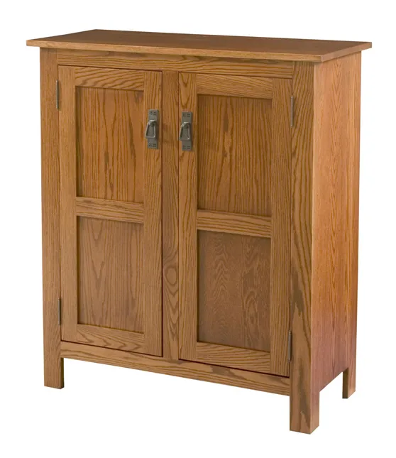 There is no more classic cabinet than this one! It has simple design that is absolutely timeless. Each of the two large doors have in-laid panels, emblematic of the Mission style of design. The large cabinet has enough space to stow dinner plates, serving bowls and trays and baked goods when you're not serving family and guests.