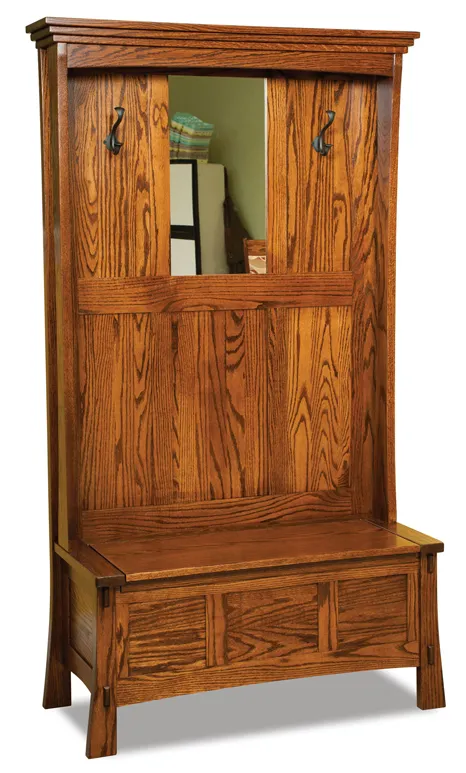 Elegant and fun, the Modesto bench is stylish without being over the top. The back of this storage seat has a mirror between two coat hooks. It can comfortably seat at least two people. Best of all, the seat lifts up to reveal a storage compartment for those hard to categorize items.