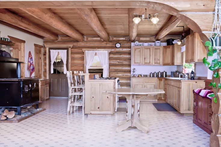 The sturdy pedestal of this table supports various tabletop shapes so you can personalize your rustic kitchen.