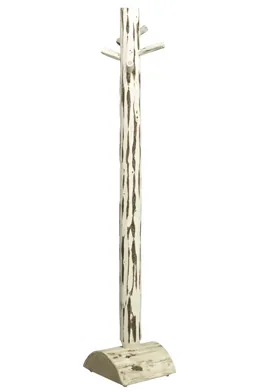 The Montana Coat Tree is practically still a tree, built from a rustic log base with a log post and twig pegs.