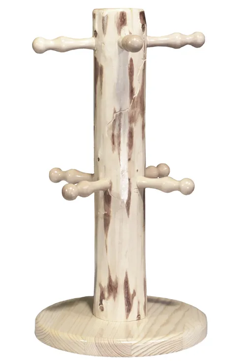 This is the cutest cupholder in the countryside, with woodturned spindles around a log stand.