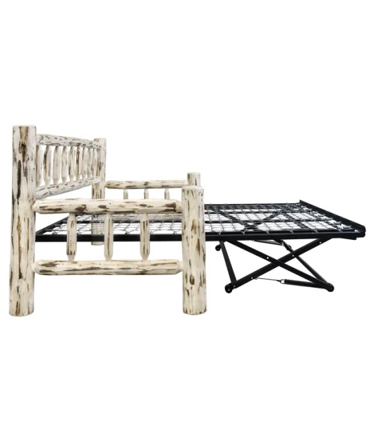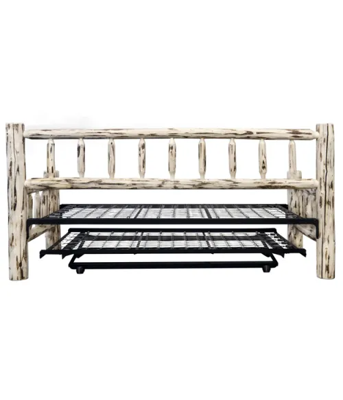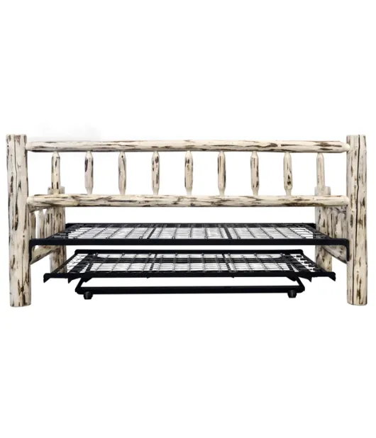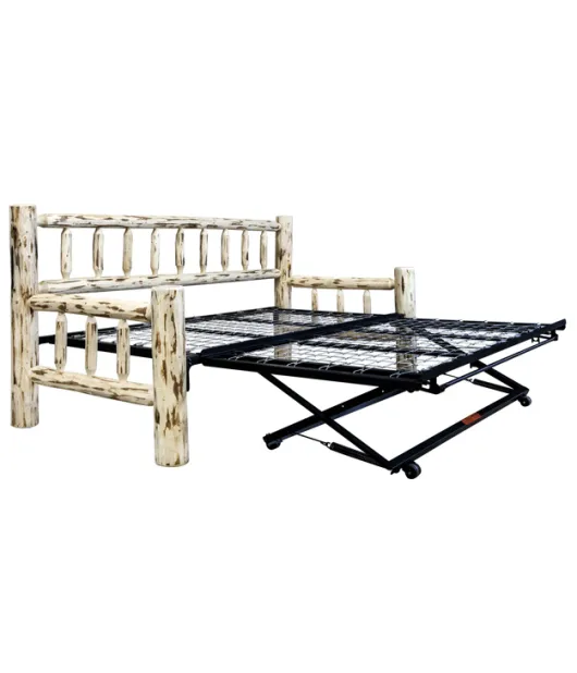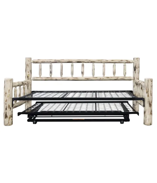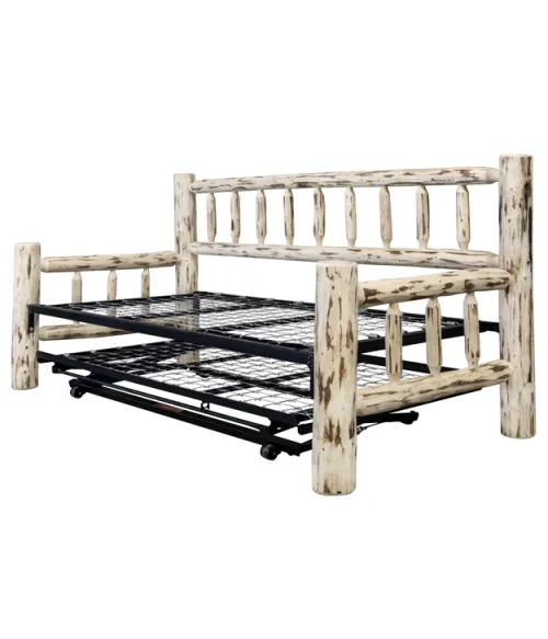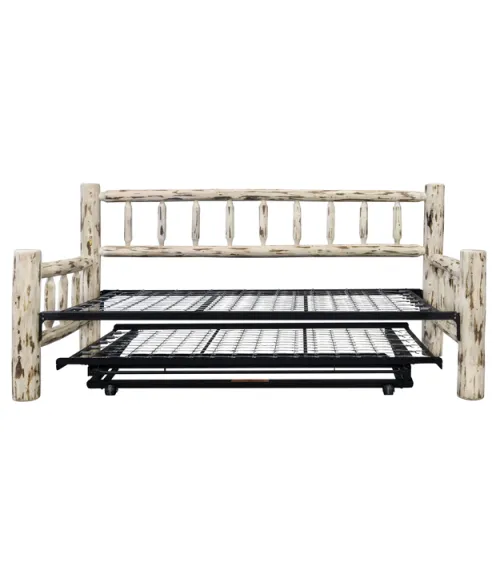 The Montana Day Bed is made of stripped logs; how fitting that the style is perfect for any day bed's spindled design. This day bed comes with a space-saving trundle that stores conveniently underneath until you need it.