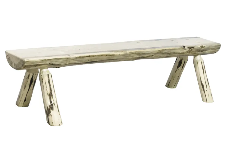 The Montana Plank Style Bench has a traditional plank bench top, but the base consists of rustic log..