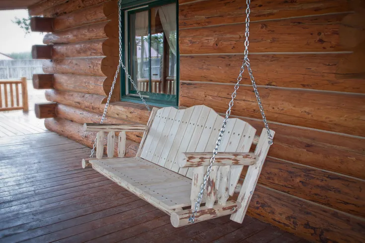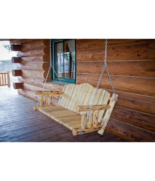 Swing into the wilderness with this beautiful wooden patio swing with a slatted timber seat and back.