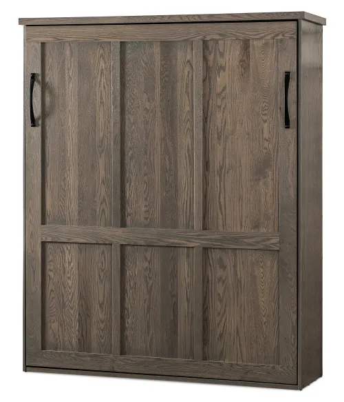 Pictured in oak with Driftwood stain in Queen size. Shown with tall side cabinets.