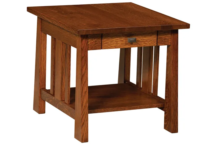 The pictured Open Freemont Mission 24" End Table is built in qs white oak with Michael Cherry stain.