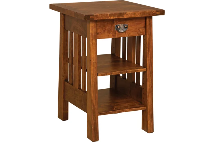 The pictured Open Freemont Mission Printer Stand with drawer is built in rustic cherry with Michaels Cherry stain and #10 Medium-Distress sheen.
