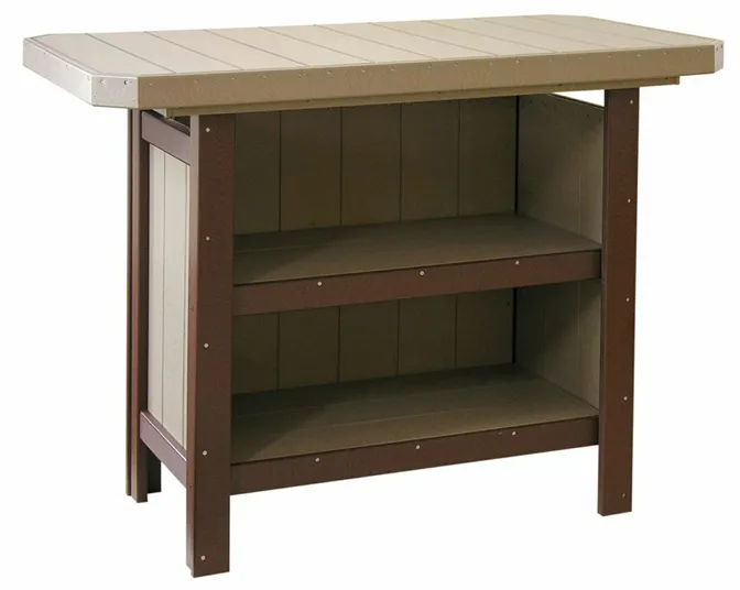 Take the bar with you. The great outdoors is too big for you to confine your entertaining to the same place every time. This poly vinyl bar has two shelves and is a great match for our bar stools. Best of all are the long-lasting, easily cleaned surfaces.