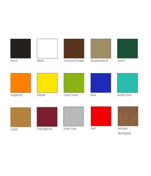 *Available in White, Black, Chestnut Brown, Weatherwood, Green, Dove Gray, Cedar, Red, Tangerine, Yellow, Aruba Blue, Cherrywood, Blue, Lime Green and Antique Mahogany.