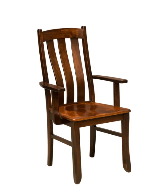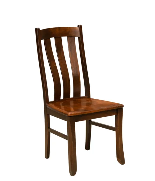 Three broad slats are contoured beneath the happy arch of this chair's head-to-seat back. The front legs have a cabriole curve with a Clydesdale flare.