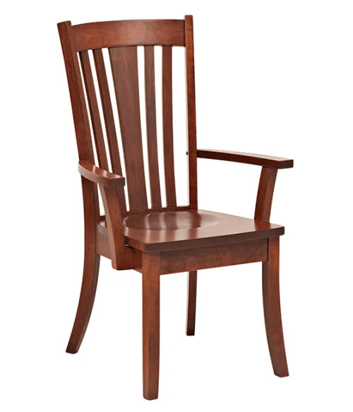 Bright and welcoming, this dining room chair is fabulous for every home. The flared legs of the chair mimic the slats in the elegant backrest. When ordering, you can choose to have armrests added.