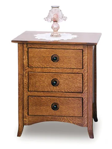 This nightstand is a great piece that comes in different wood stain options and in two sizes: 27"and 30" tall. With three roomy drawers, there is room for all of your bedside necessities.