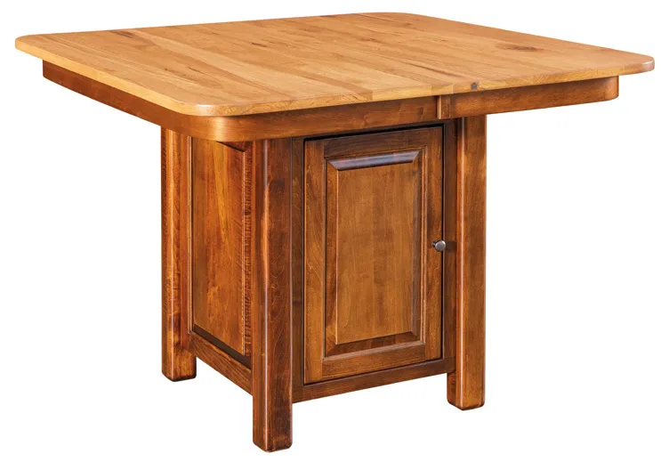 Pictured in brown maple and rustic hickory top with FC104 stain and base with Michaels Cherry stain.