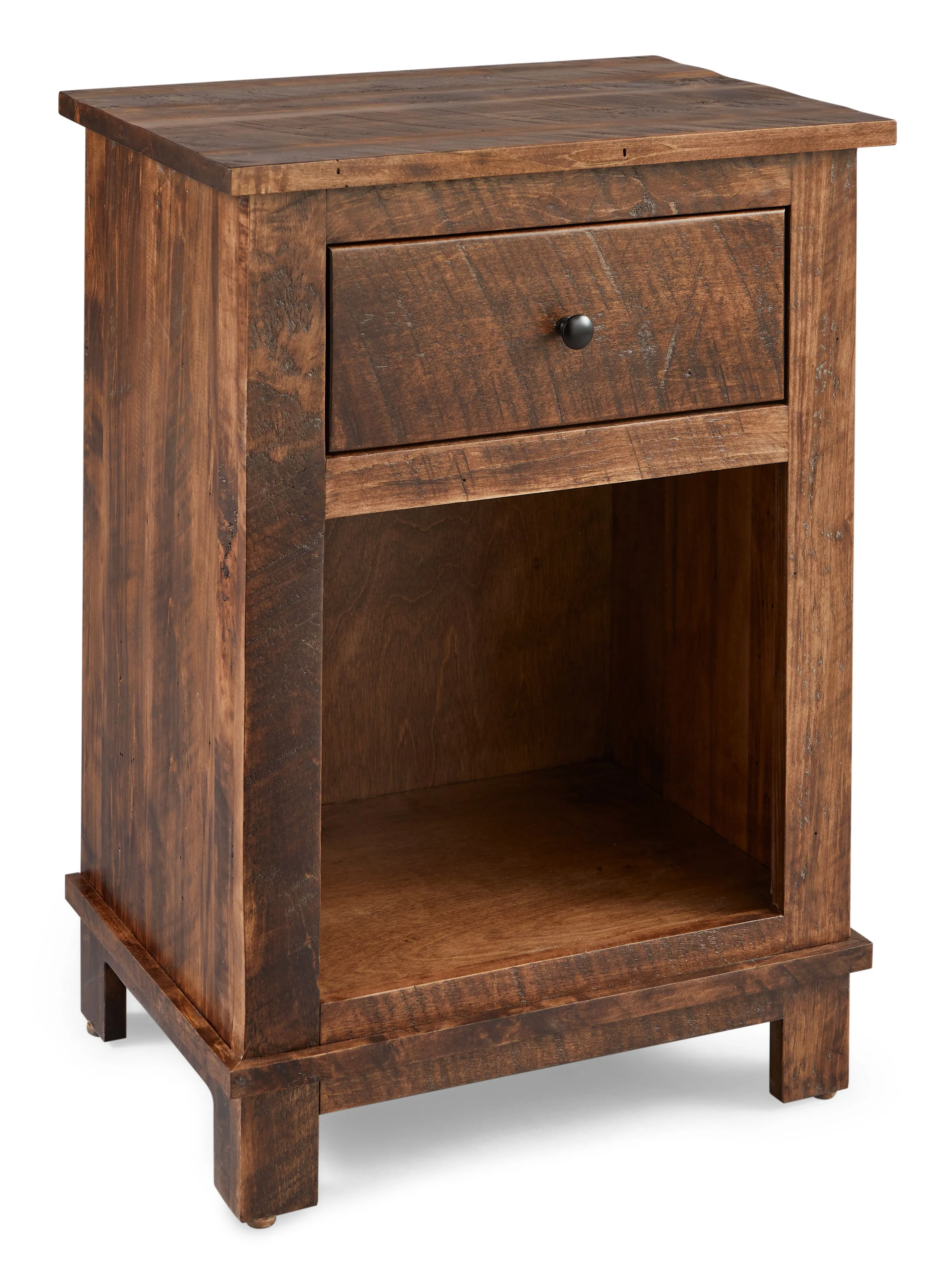 A standout feature of this nightstand is its single drawer with 0.875 extension drawer slides, providing smooth functionality and easy access to its contents. Complemented by standard A-52 hardware, the drawer exudes a simplistic elegance while offering practical storage for your nightly essentials.