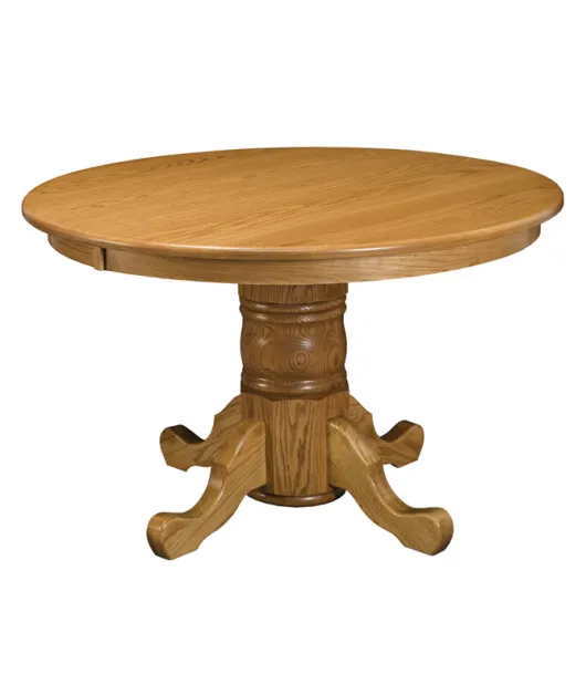 The smaller of the two round single pedestal tables available, the 42” round pedestal dining table is lovely for smaller dining rooms or pub style rooms. The simple yet classic design of the round table top and curved pedestal base are an attractive start for a timeless home. There is also a 48” tall version of this table available.