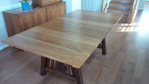 Those dark stripes on the ends are walnut inlays. Mark had a lot to say about how pleased he was with the whole selection process for his table: