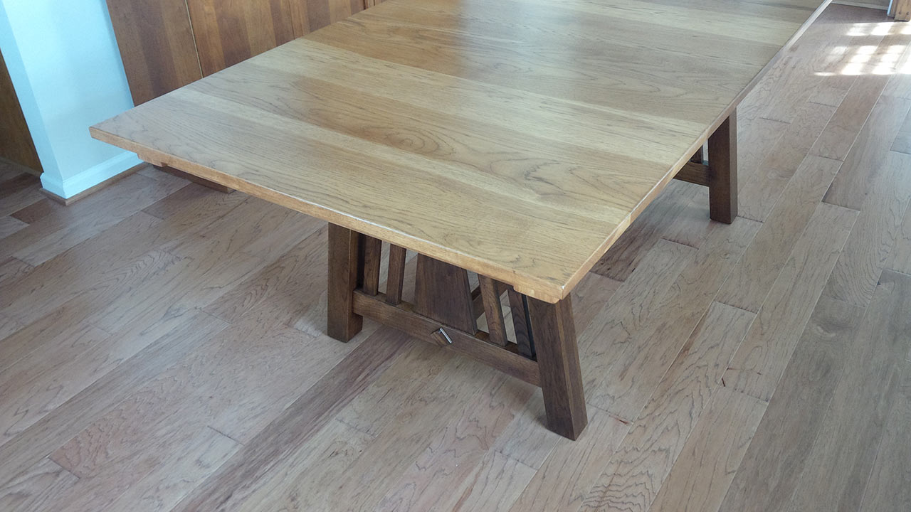 The table is fantastic. Quality superb. We're very happy we got the actual samples for the wood and stain- it really provided the proper representation of the wood that we would not have had with the original samples that were sent. We are very pleased with the wood and the stain we selected. Please give our thanks and gratitude back to the fine craftsman.