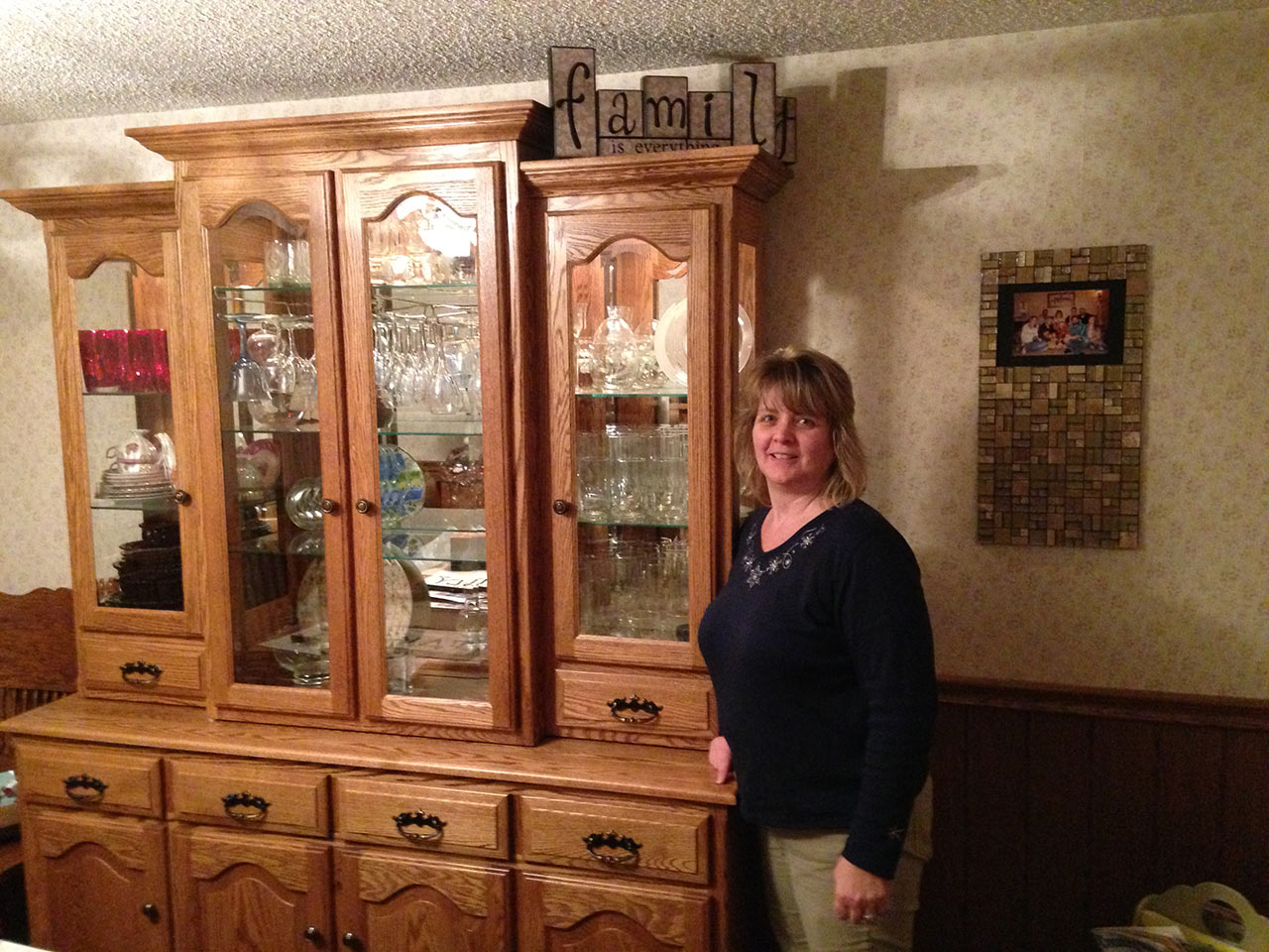 Jill is so pleased with her solid oak hutch, she posed with it to show it off: